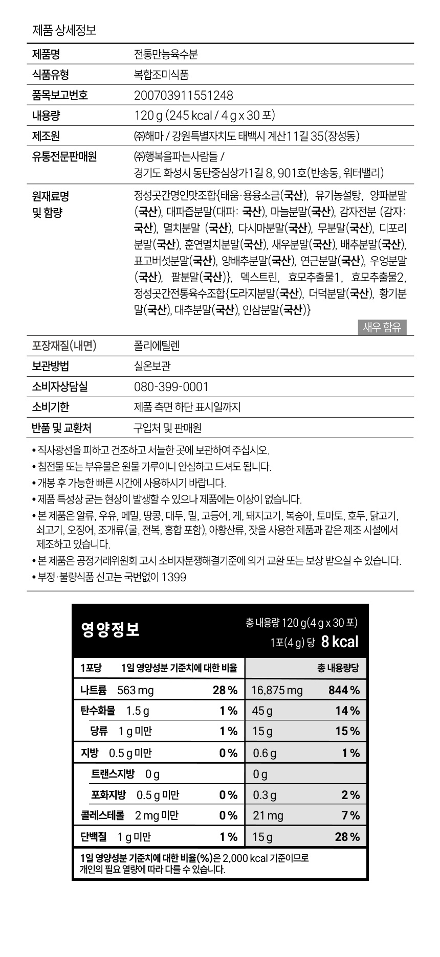 원재료명 (관계 법령에 따른 원산지 표시 포함) 및 함량